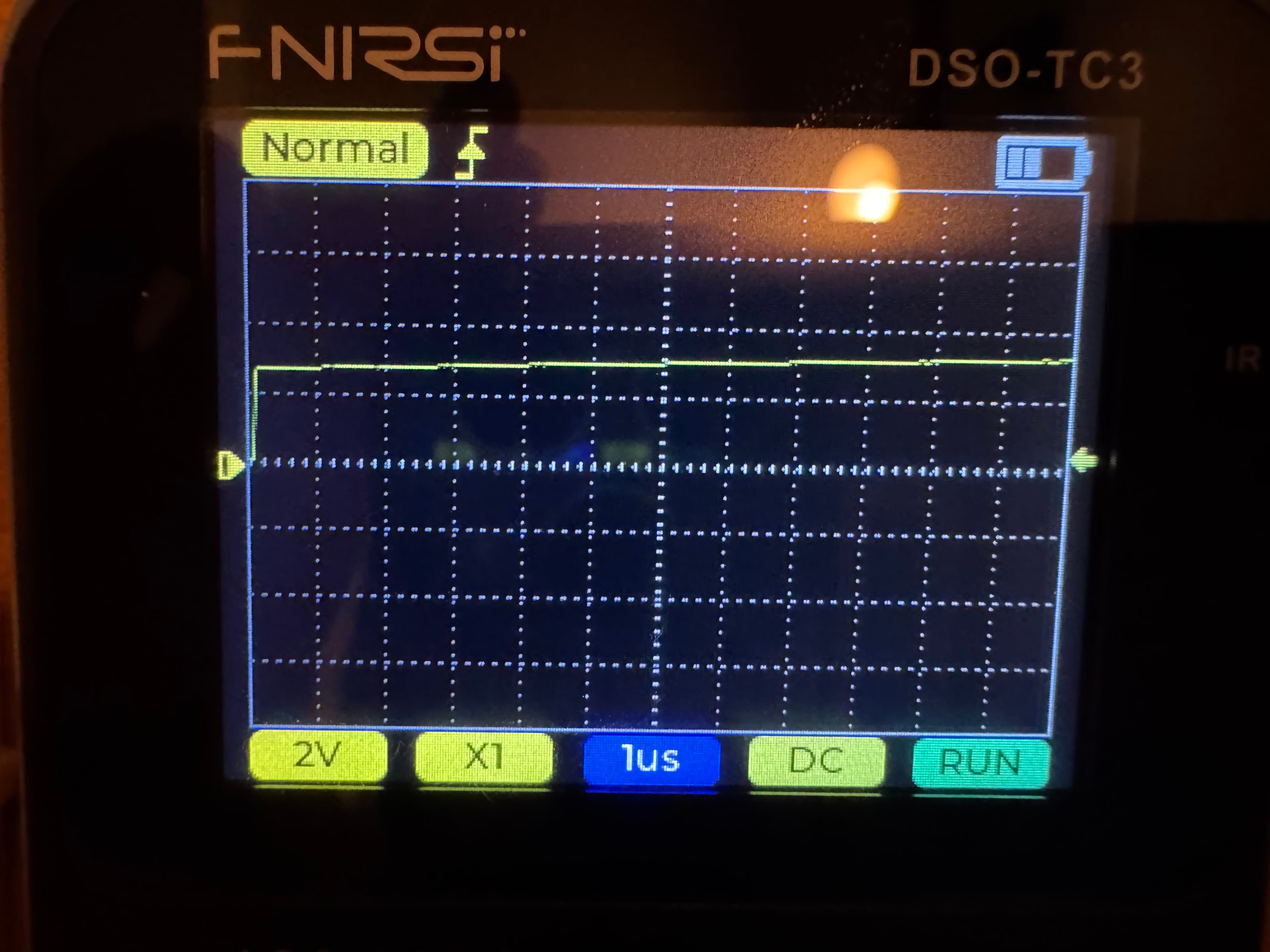 そこで、なるべく出費は避けたかったですが、やむを得ずオシロスコープを購入し、調査を試みました。オシロスコープは比較的安価なDSO-TC3というもの試しました。しかし、そのオシロスコープの最小の計測幅である1µsで観測しても、波形はキレイに立ち上がっているように見え、問題は見受けられませんでした。また、同スコープに搭載されているジェネレータ機能を使って、1Hz/10Hzの矩形波を生成してみても、やはりアドレスが不安定に遷移していきました。