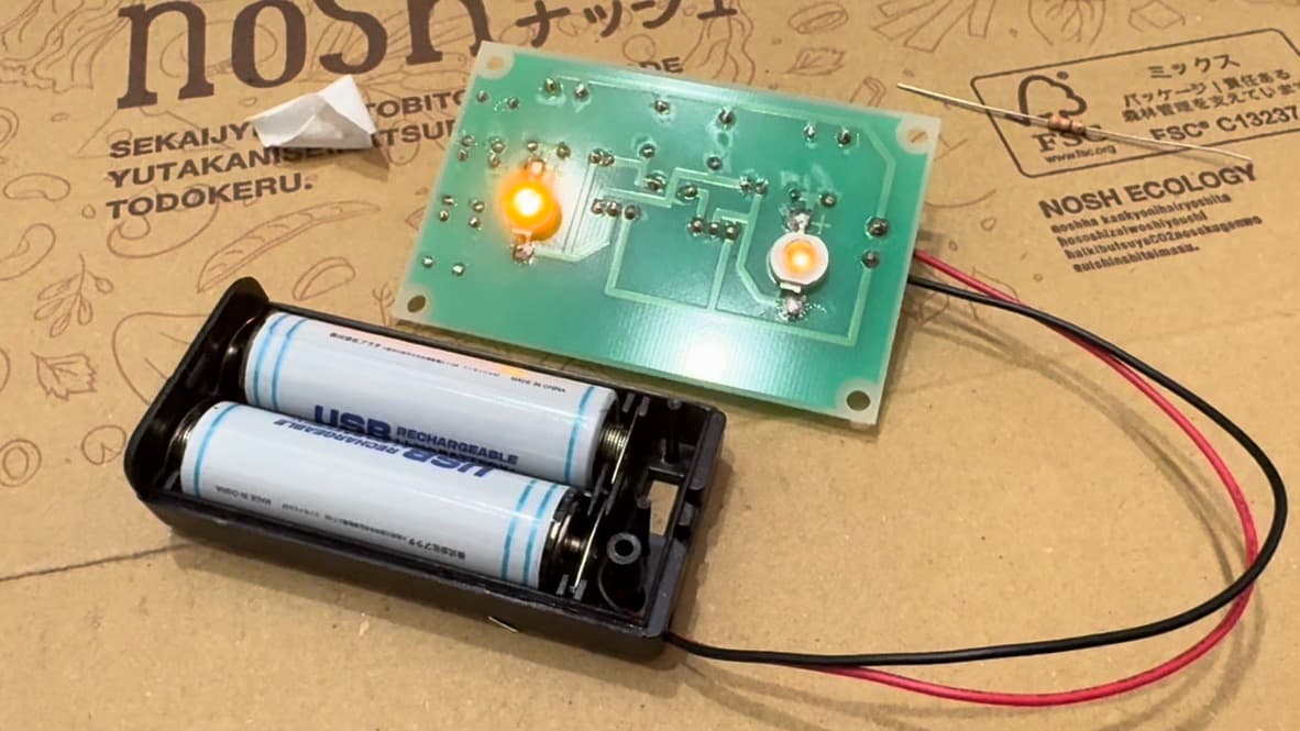 ブレッドボードでの動作確認ができたためはんだ付けに入りました。はんだ付けの道具には、秋月電子で売っている『はんだ付け入門セット』みたいな名前のものを買いました。